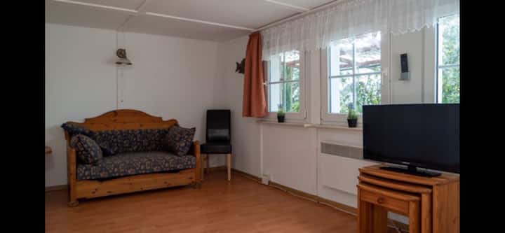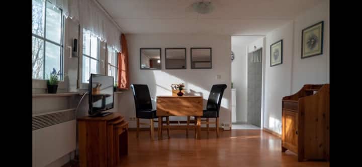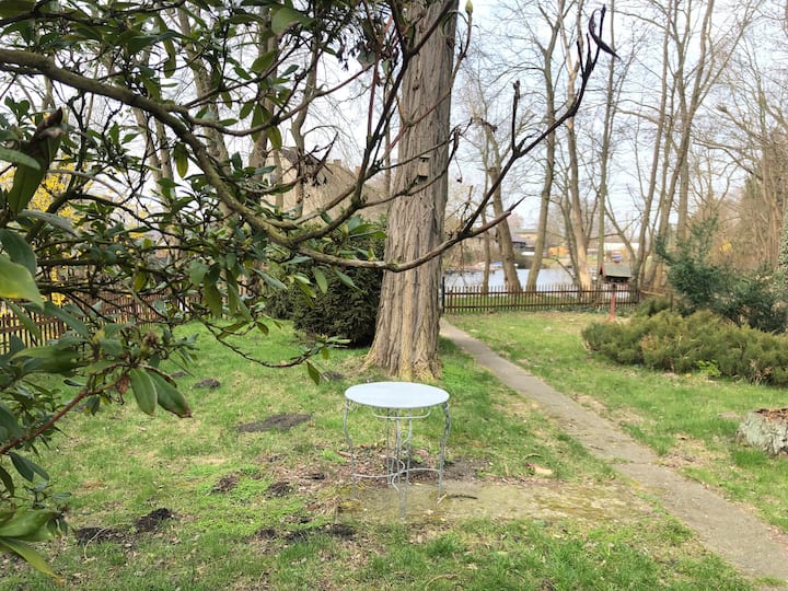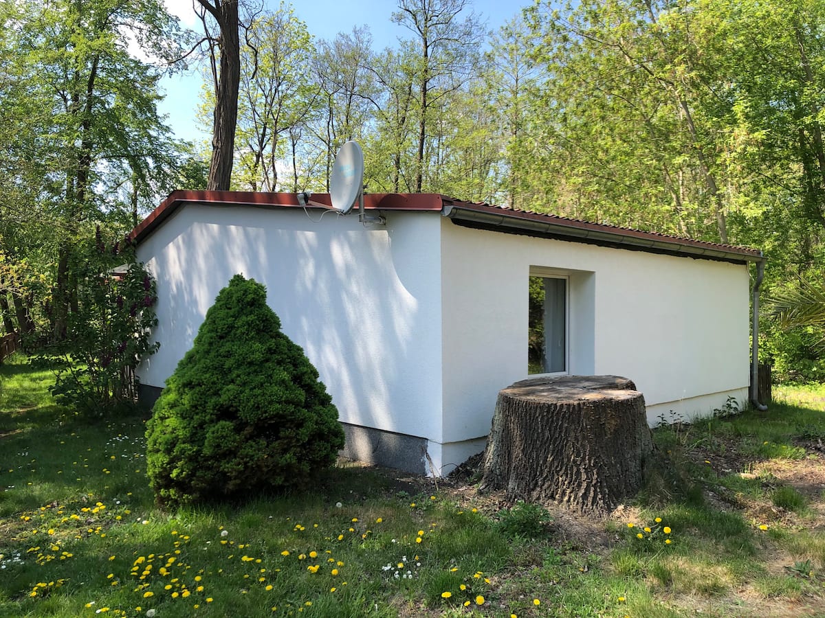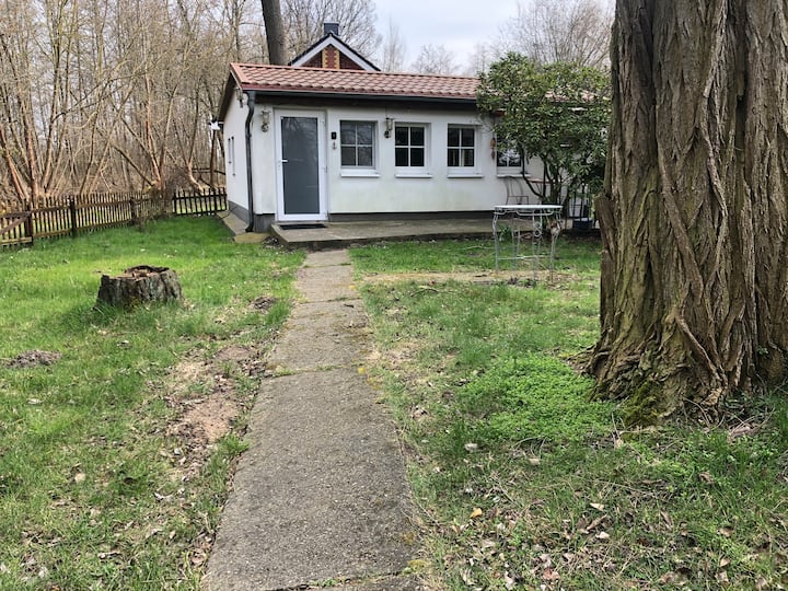 Isolierter Bungalow „Fischerhütte" in Alleinlage direkt am Wasser (Havel-Seitenarm). Gemütliche, moderne bzw. neue Ausstattung, niedrige Deckenhöhe (200 cm). Voll möbliert mit eigenem Parkplatz.